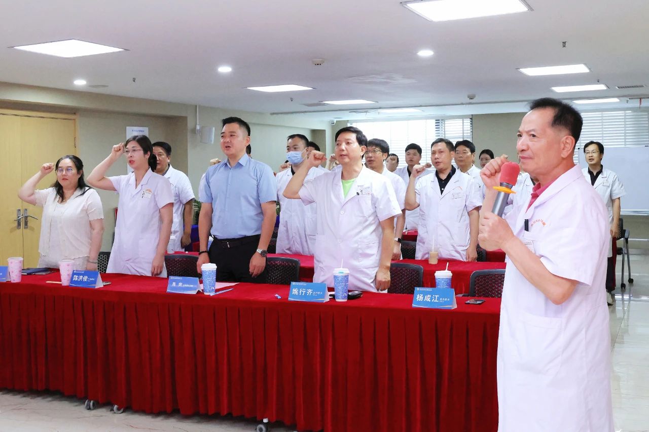 全体医师代表举起右手,在杨成江院长的带领下,一起重温医学生宣言。一句句庄严的誓词,一声声嘹亮的宣誓声,藏着对医学的敬畏与向往,彰显医者不忘从医的初心使命。