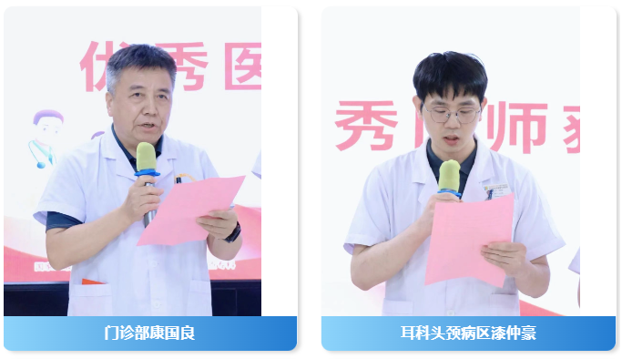 4位优秀医师代表相继登台发言,他们纷纷表示将继续践行医者初心,为人民群众的耳鼻喉健康保航。部康国